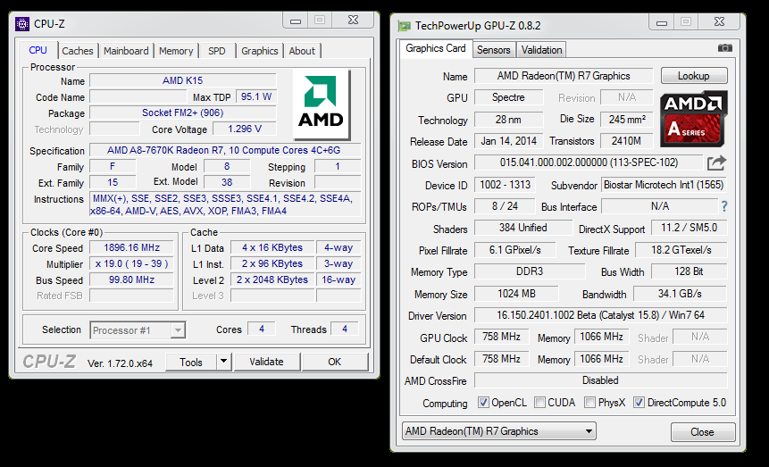 The charts in the table below demonstrate performance of A8-7600 and Core i5-4440 CPUs in a few different program types. AMD Radeon R5 Graphics.