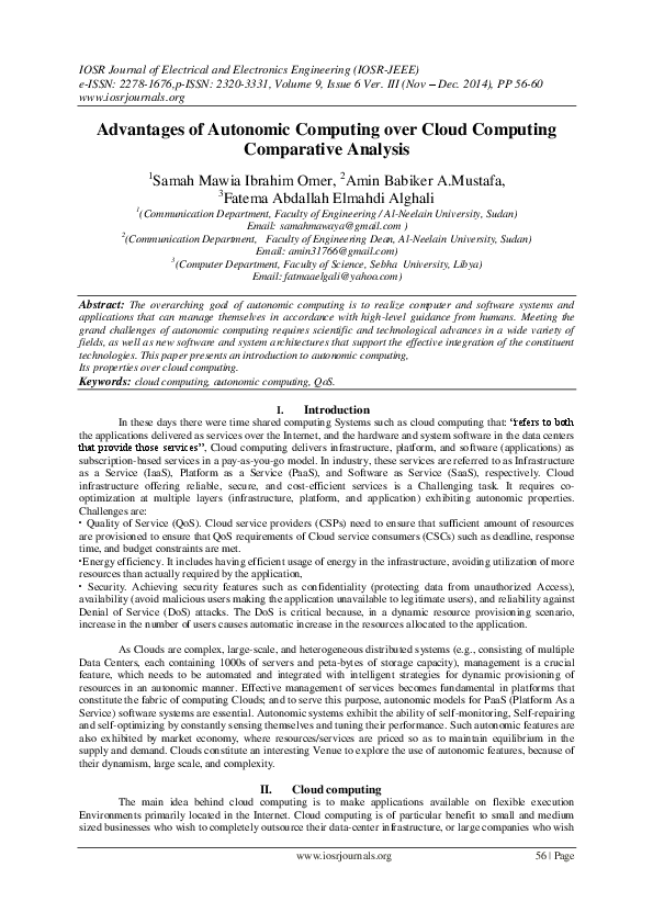 Pdf Advantages Of Autonomic Computing Over Cloud Computing Comparative Analysis Top Journal Best Impact Factor Academia Edu