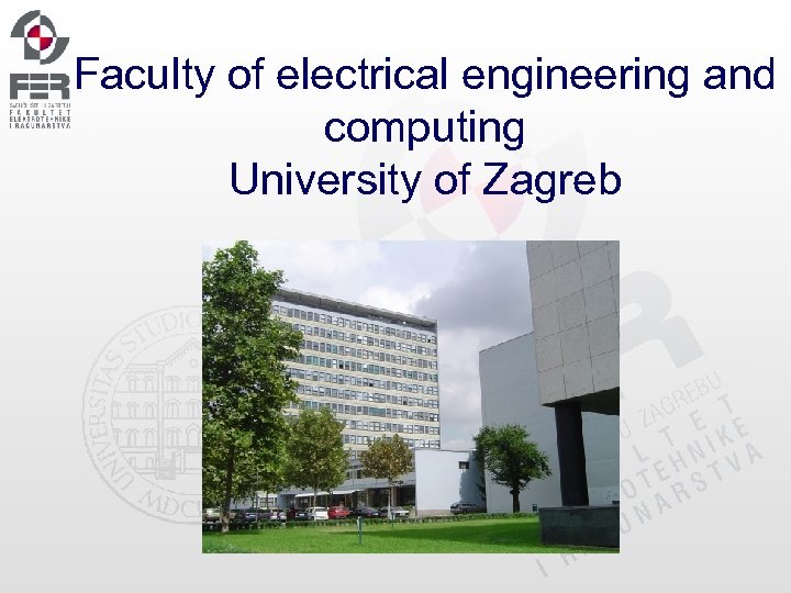 Faculty of electrical engineering and computing. The University of Zagreb Faculty of Electrical Engineering and Computing FER Faculty of Electrical Engineering and Computing of the University of Zagreb Croatian acronym. In 2004 at the Faculty of Electrical Engineering and Computing University of Zagreb.